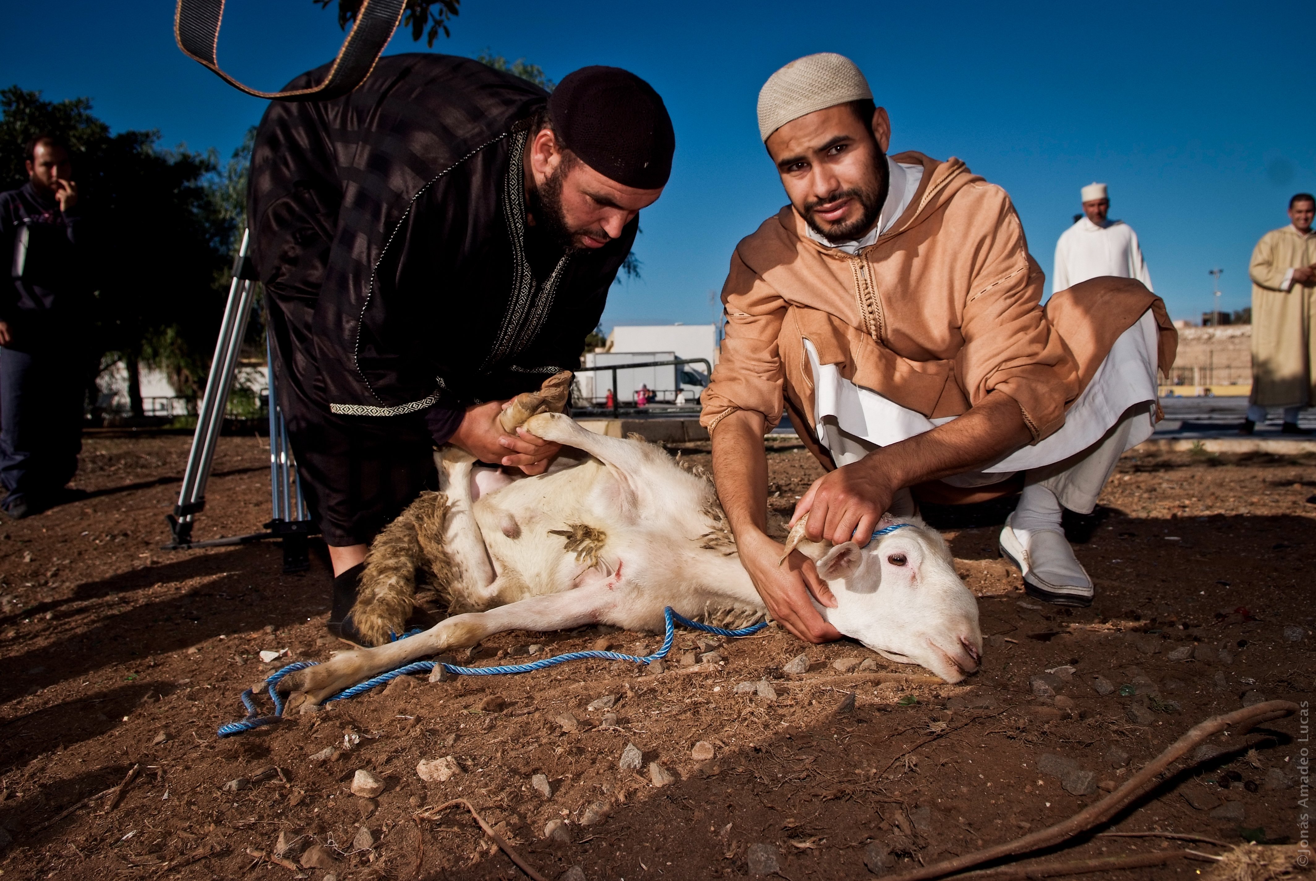 El Eid al-Adha coincide con la culminación de la peregrinación a La Meca (Hajj), uno de los cinco pilares del islam2, y se caracteriza por el sacrificio de un animal, normalmente un cordero o una vaca. Para aquellos que no realizan la peregrinación, esta fiesta se celebra con una oración seguida del sacrificio de un animal; para los que se encuentran en La Meca, el sacrificio constituye el rito final de la peregrinación.