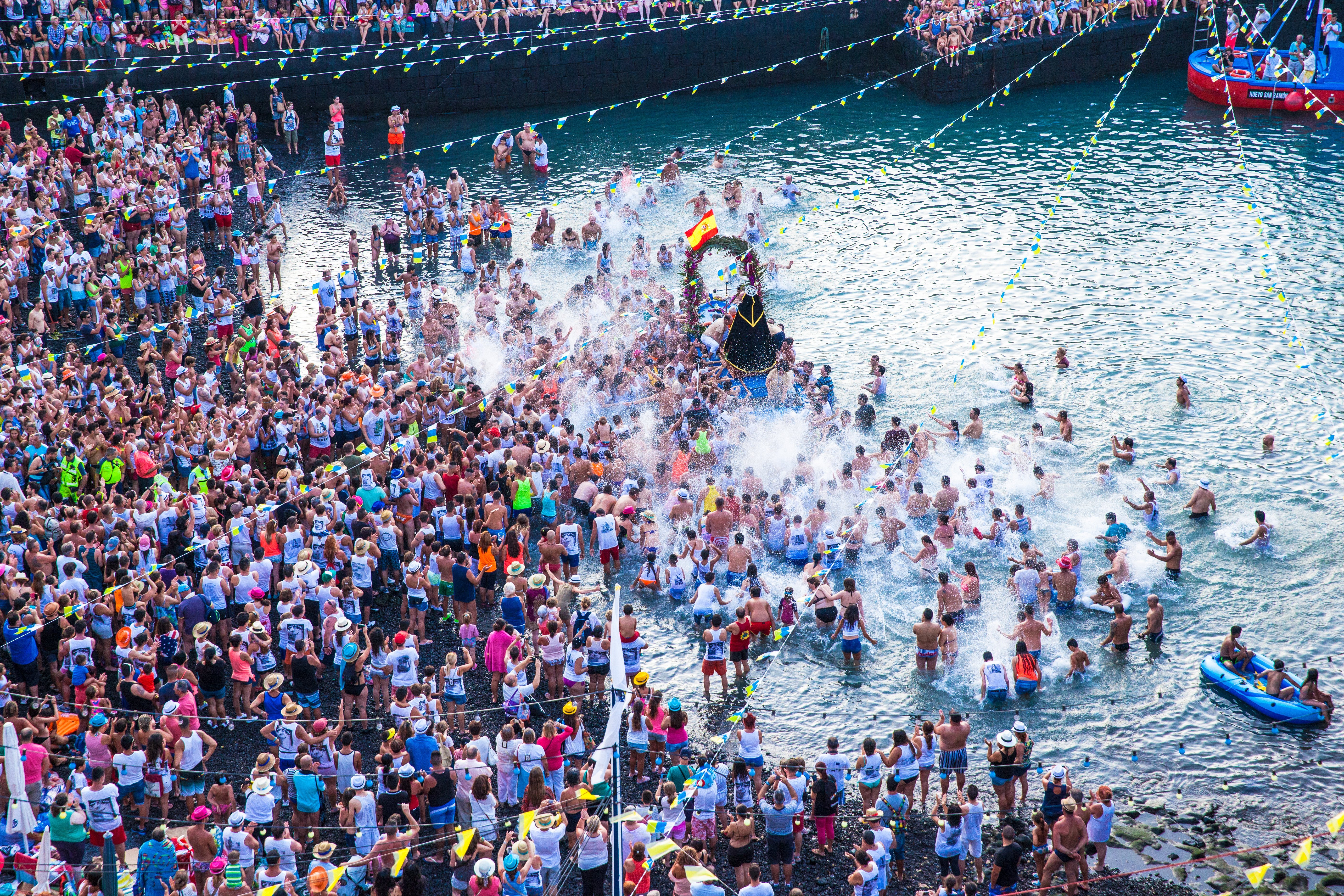 La Fiesta de la Virgen del Carmen en el Puerto de la Cruz, en Tenerife, es una de las celebraciones más emblemáticas de las Islas Canarias, atrayendo a más de 100.000 personas. El evento central es conocido popularmente como la Embarcación de la Virgen del Carmen y San Telmo, momento en que los pescadores, después de una procesión por el pueblo, embarcan las imágenes de ambas figuras para pasearlas por el mar.