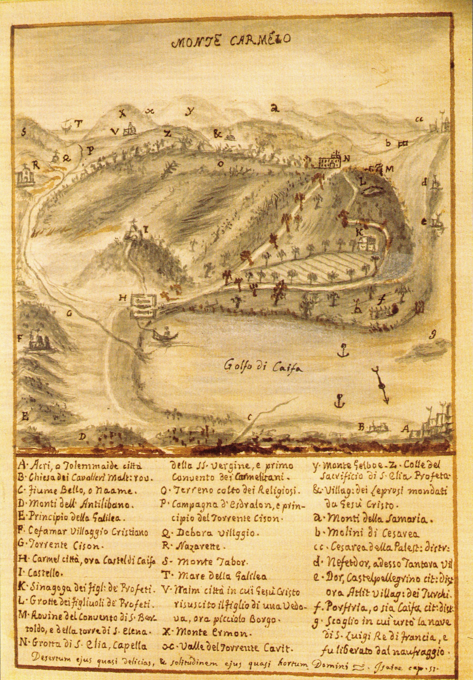 Y otra vez aparece el Monte Carmelo. Una leyenda cuenta que cuando los barcos querían llegar al puerto de Acre, veían una luz en la capilla del Monte Carmelo, donde vivían los carmelitas, y por eso para los marineros esa luz era la «Estrella del mar»4. También San Simón Stock asoció la Virgen del Carmen al mar en su célebre oración: "Flor del Carmelo Viña florida, esplendor del cielo, Virgen fecunda, singular. ¡Oh Madre tierna, intacta de hombre, a todos tus hijos proteja tu nombre, Estrella del Mar!”.