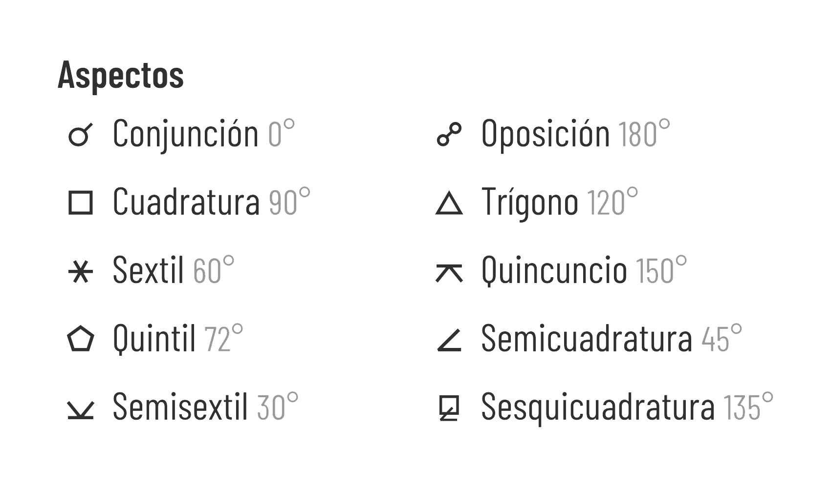 Los aspectos detectados entre los planetas también se indican mediante símbolos.