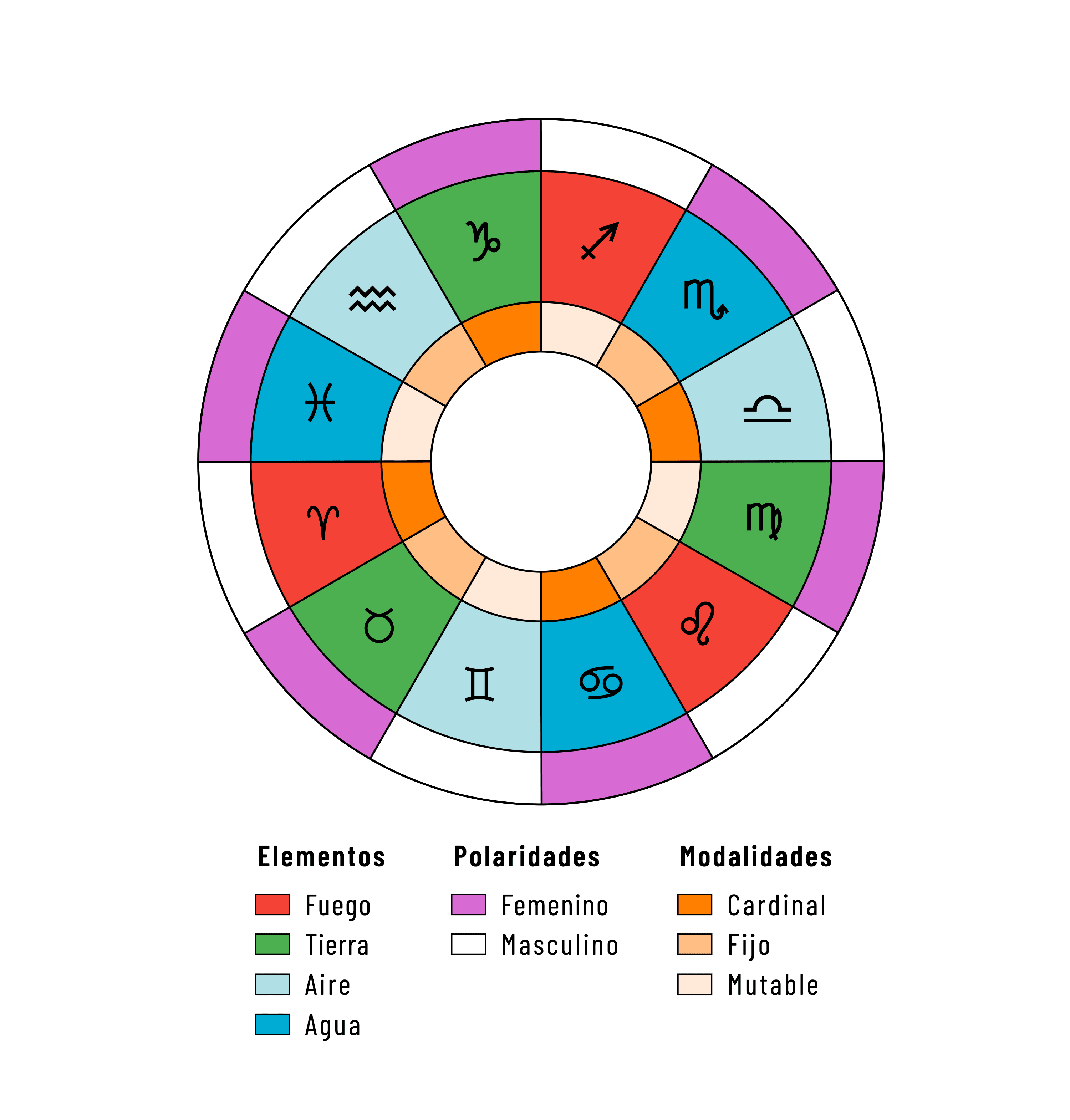 Los signos de fuego (Aries, Leo y Sagitario) son dinámicos y siempre están en acción. Los signos de tierra (Tauro, Virgo y Capricornio) están anclados en lo concreto. Encarnan la permanencia y la construcción. Los signos de aire (Géminis, Libra y Acuario) se relacionan con la abstracción, la mente o el intelecto. Por último, los signos de agua (Cáncer, Escorpio y Piscis) comparten una sensibilidad exacerbada y están atentos a sus emociones y percepciones.