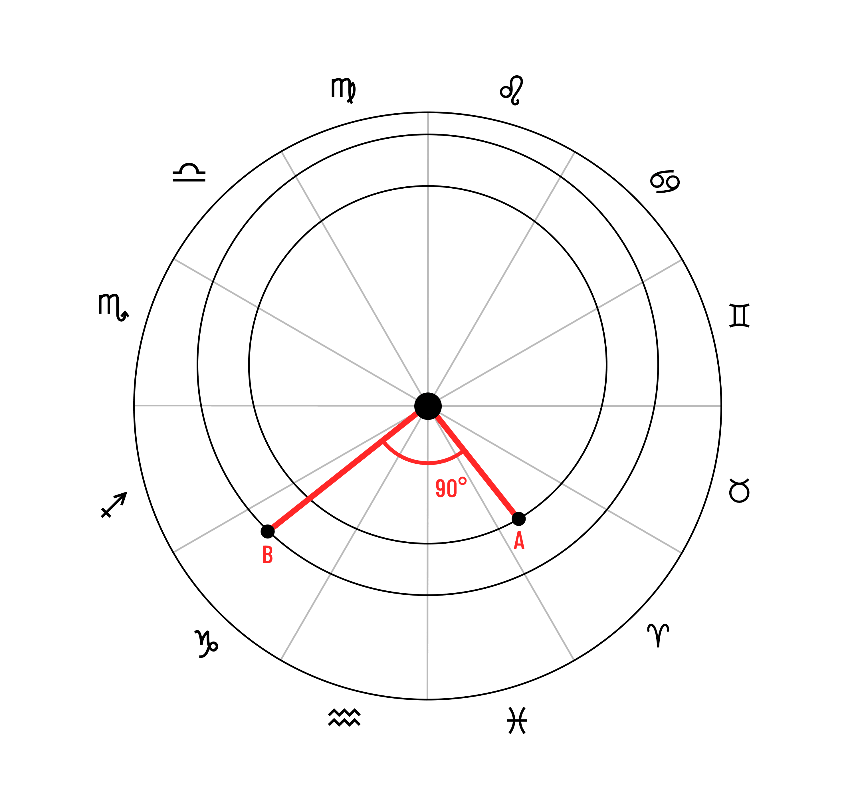 90° | Cuadratura (cuartil) | Mayor | Cuadrado | # | 4 |