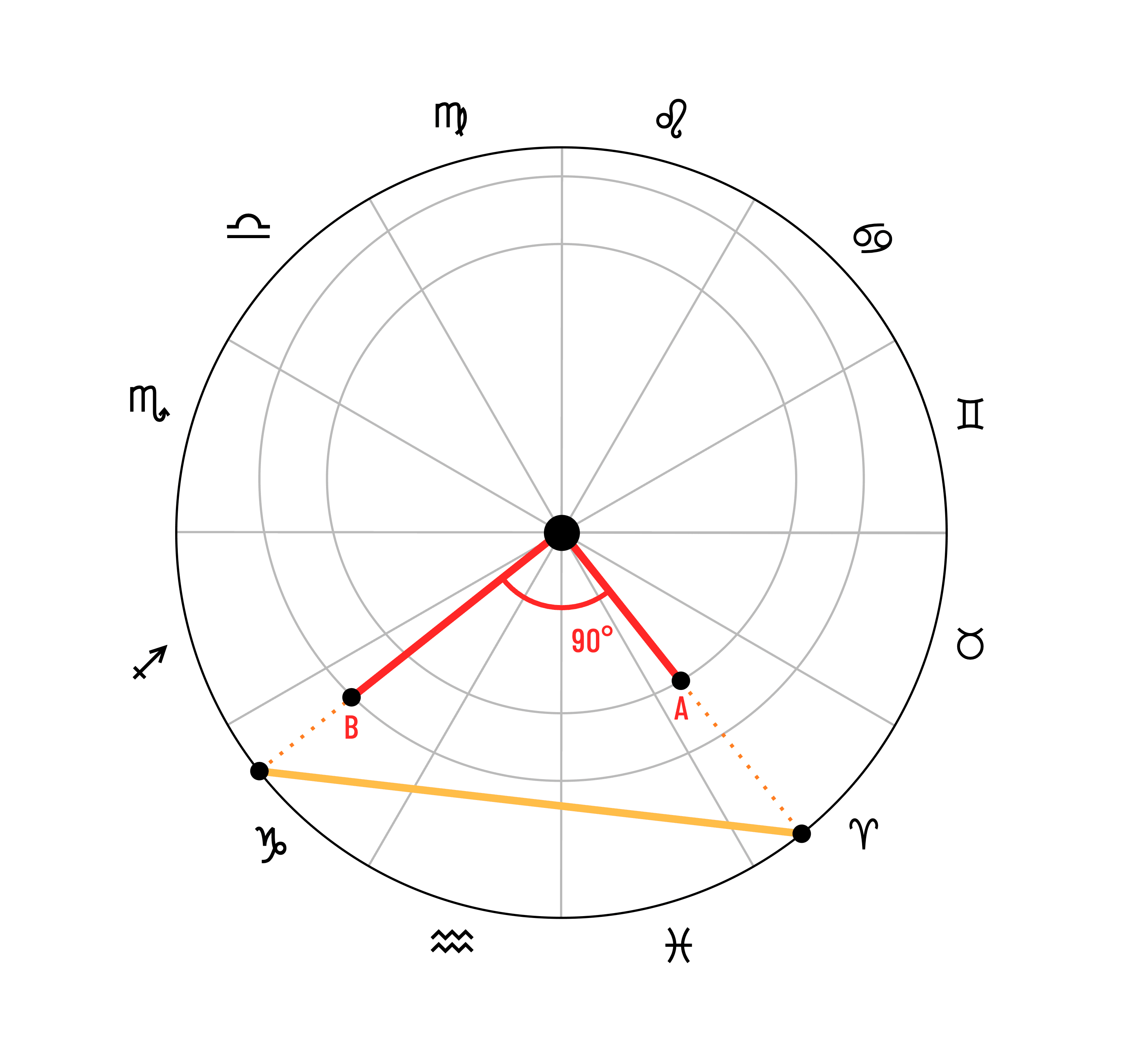 Para poder evaluar las relaciones entre los planetas y sus influencias mutuas, la astrología analiza los ángulos que forman sus posiciones en la eclíptica de dos en dos. El estudio de los «aspectos» proporciona la dinámica de la carta astral.