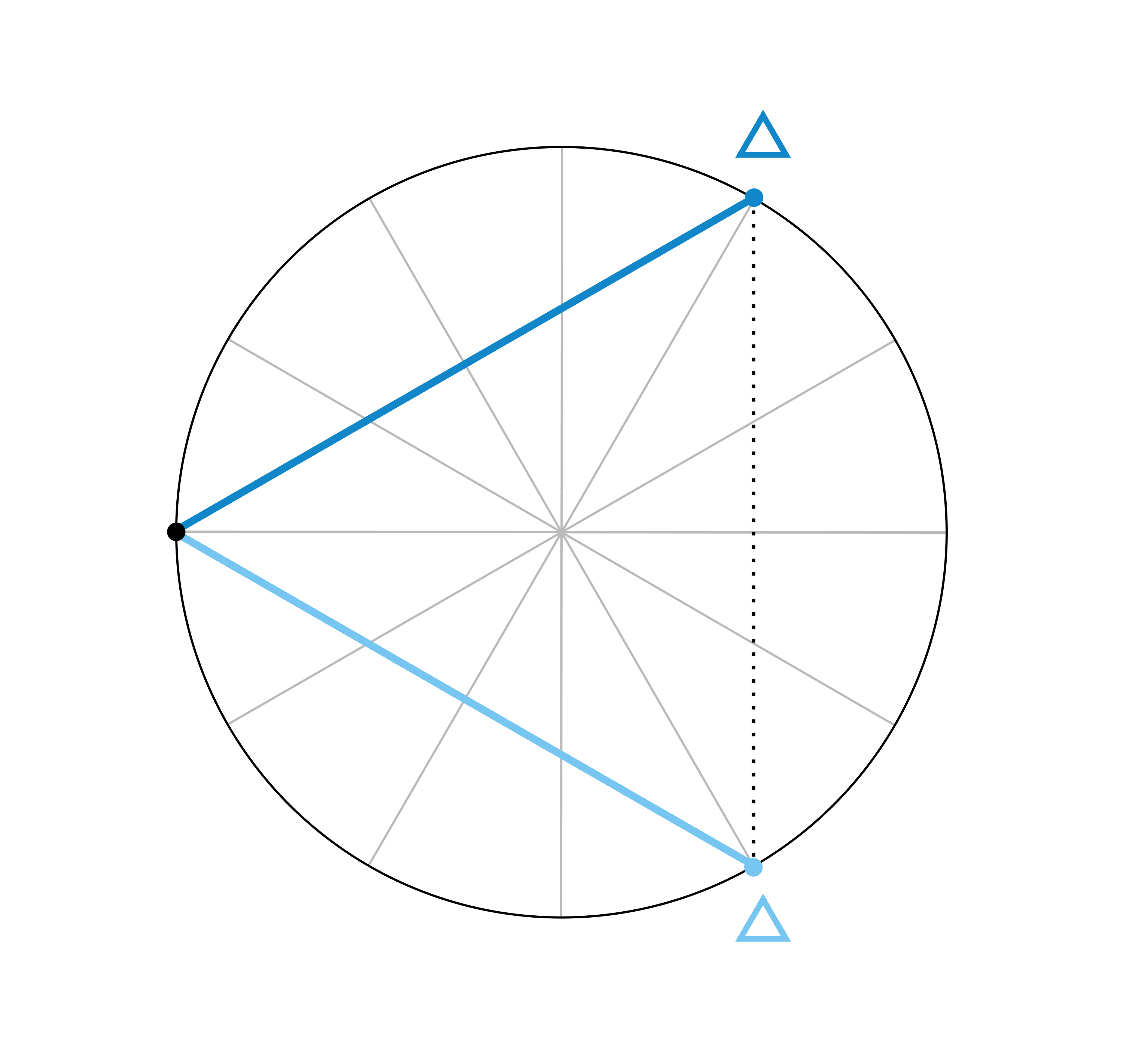 180° | Oposición | Mayor | Segmento | " | 2 |
