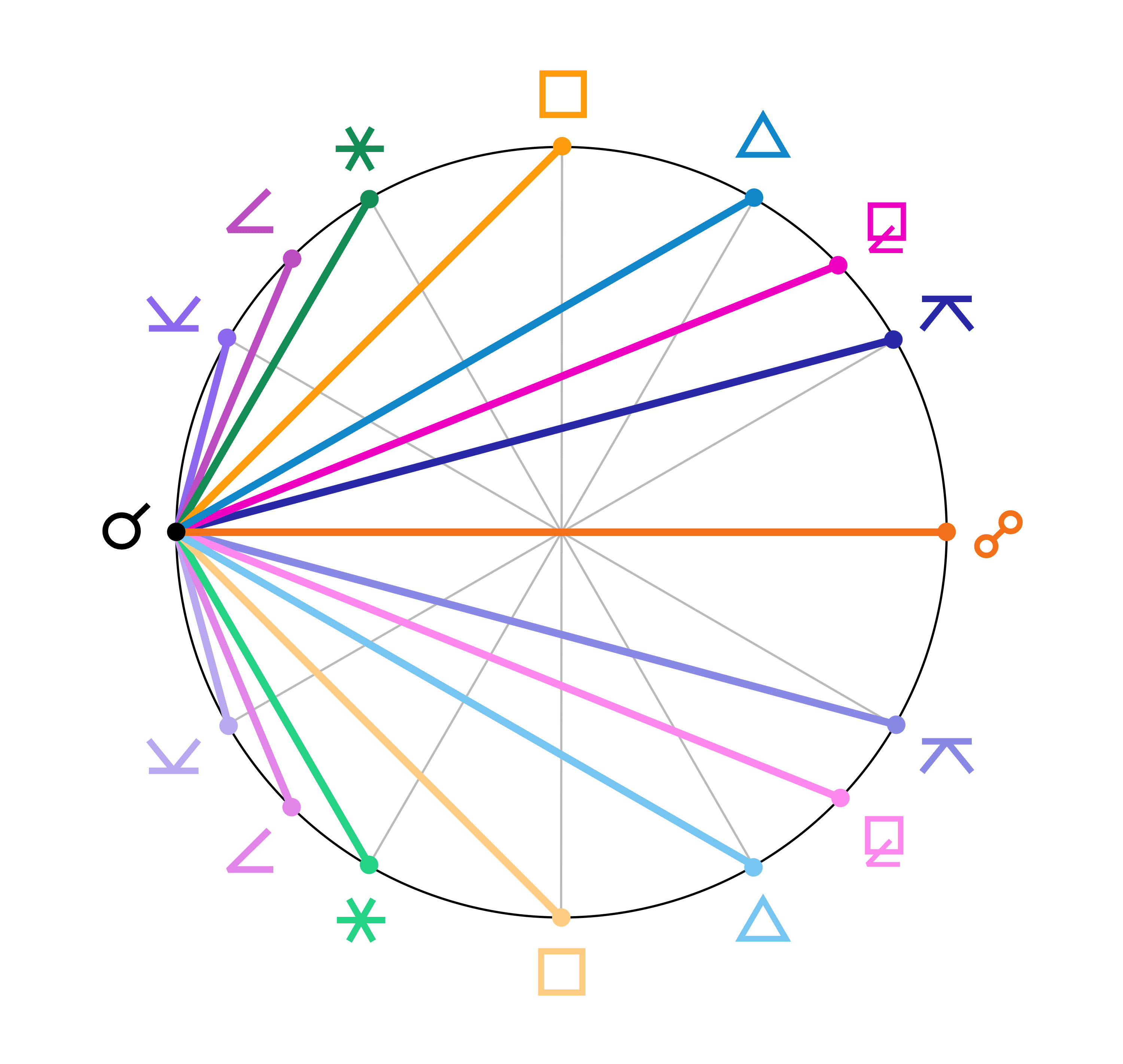 - entre un cuerpo celeste de tu carta natal y otro a lo largo de un año.
